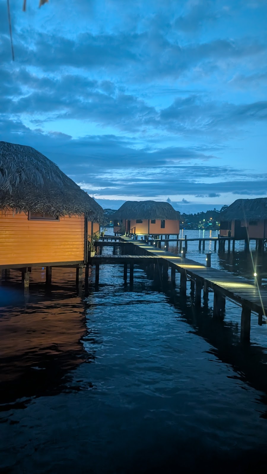 The Sea Monkey in Bocas del Toro, Panama — overwater bungalows above the Caribbean with an overwater restaurant.…